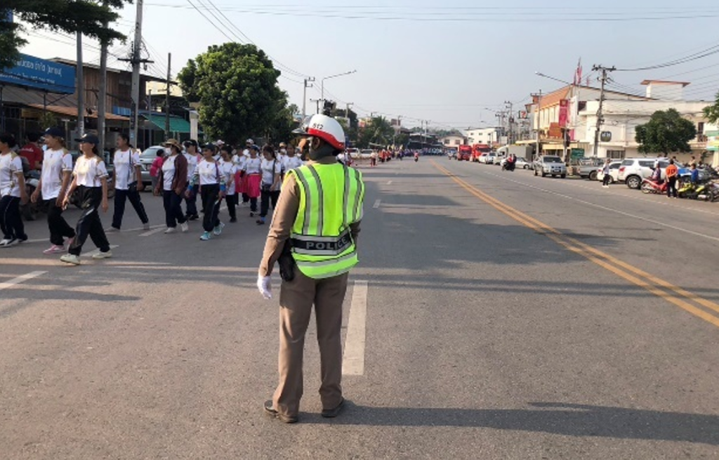 – ชุดปฏิบัติการจราจร สภ.ฟากท่า อำนวยความสะดวกการจราจรขบวนนักกีฬา การแข่งขันกีฬาสัมพันธ์ 5 เหล่าเทาแดง ครั้งที่ 23