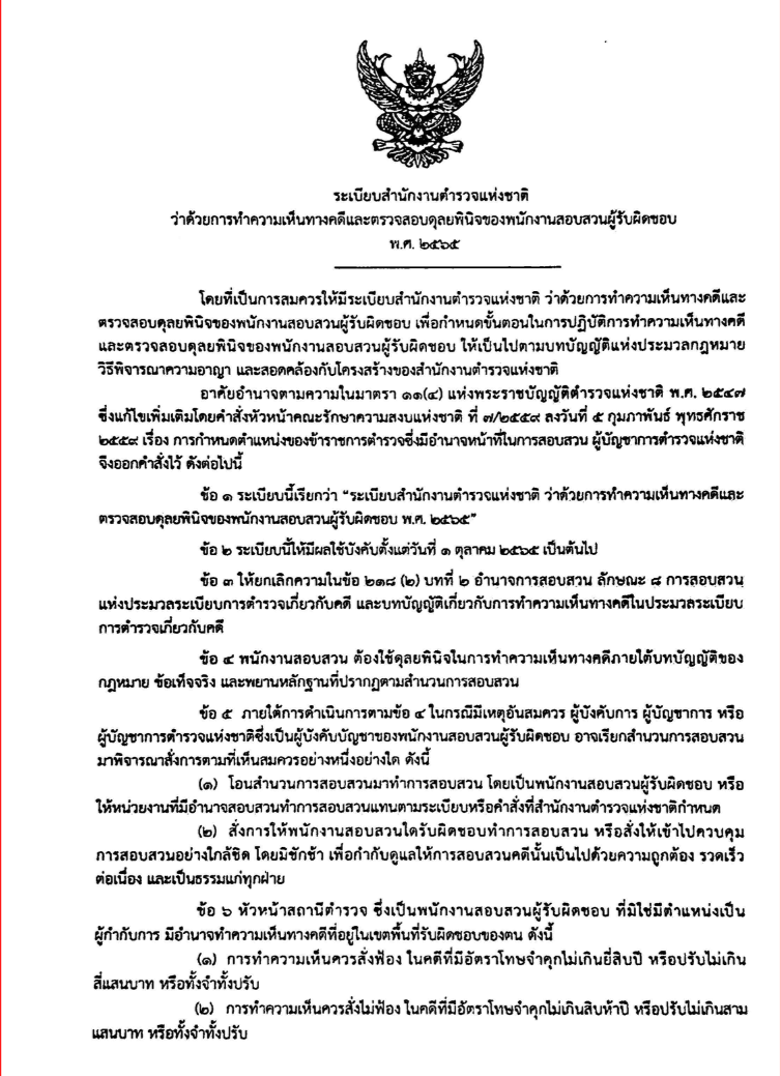 1.ระเบียบสำนักงานตำรวจแห่งชาติ ว่าด้วยการทำความเห็นทางคดีและตรวจสอบดุลยพินิจของพนักงานสอบสวนผู้รับผิดชอบ พ.ศ.2565